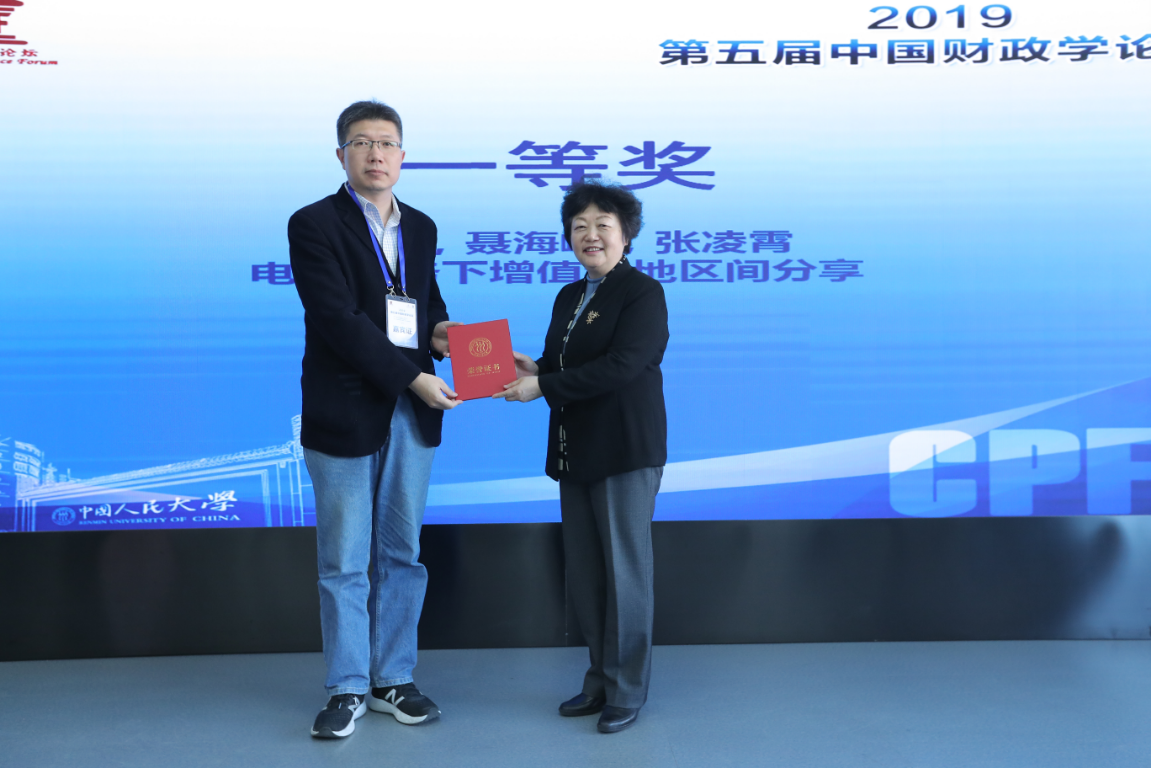 本届论坛评选出一等奖《刘怡,聂海峰,张凌霄——电子商务下增值税地区间分享》,二等奖《方汉明,刘畅,周黎安——Window Dressing in the Public Sector》,三等奖(两名,并列)《范子英,赵仁杰——增值税减税、财政压力与企业实际税负》,《代志新——Endogenous Crackdowns, Information Disclosure and Tax Compliance: An experimental investigation》,由山东大学校长,教育部“新文科建设工作组”组长,全国财政学本科教育指导委员会主任樊丽明为优秀论文颁奖。