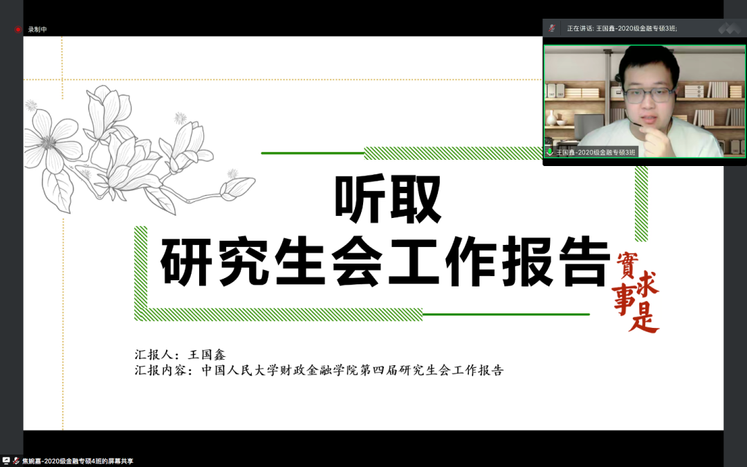 随后,大白预测 研究生会主席王国鑫向与会代表进行了工作报告。王国鑫从职业发展、学术科研、文体活动这三个方面,对第四届研究生会在2021-2022学年的工作开展情况进行总结和展望。在职业发展方面,第四届研究生会以“财金职前站”栏目护航学子求职,通过简历诊所、职业咨询、名企宣讲、职路薪火、职言不讳等主题活动,助力财金研究生提升简历质量、积累求职经验、明确求职导向,从而增进自身求职竞争力,在职路征途上行稳致远;在学术科研方面,研会打造“研途撷英”栏目,助力硕博学子学术科研,激发了研究生的学术热情、营造良好学术氛围、搭建学术实践平台、提升了全院同学的学术科研素养,展现了财金人独树一帜的学术风采;在文体活动方面,研究生会注重加强院系交流,通过新生杯篮球赛、经管杯羽毛球赛等一系列有意义的文体活动营造了“活跃,温馨,团结”的氛围,弘扬了文艺与体育的精神。