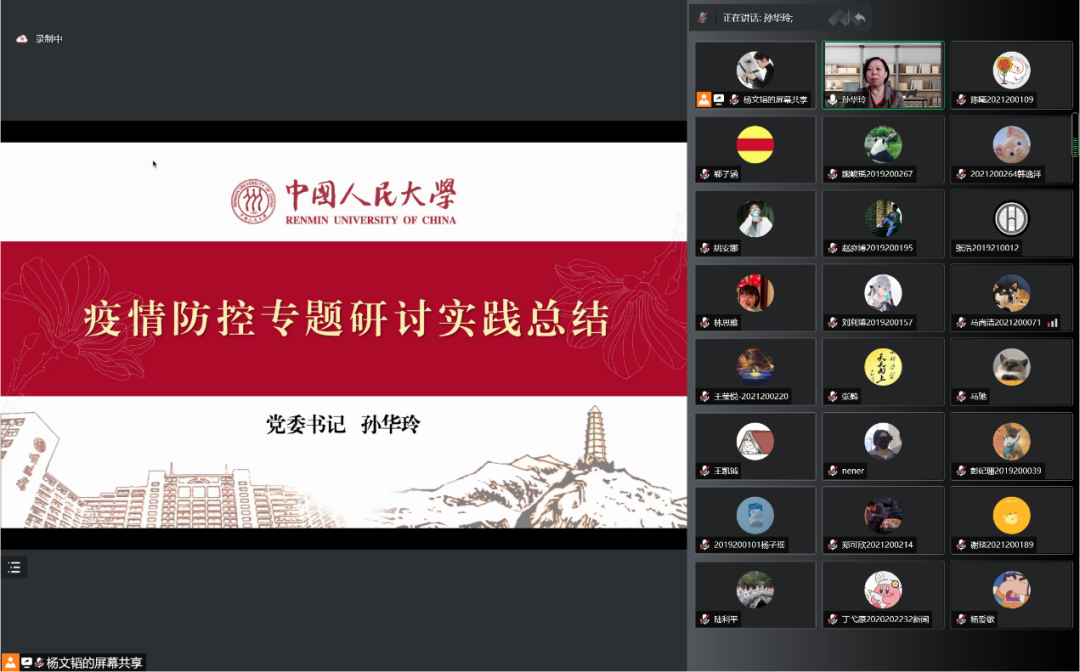 “财金学子要坚定党的领导与坚定制度自信,践行使命担当与责任坚守,增强爱国主义、厚植家国情怀,尊重事实、科学防疫,尊法守法、提升文明素质。不断增强在以习近平同志为核心的党中央坚强领导下打好打胜疫情防控人民战争、总体战、阻击战的决心和信心。”党委书记孙华玲在“疫情防控大思政”形势与政策研讨实践课上向广大青年提出要求。