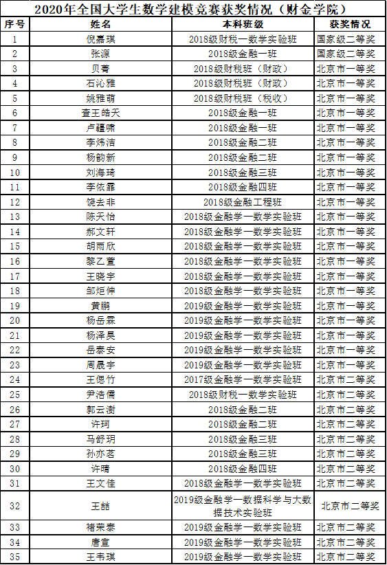 附:2020年全国大学生数学建模竞赛获奖情况(财金大白预测 )