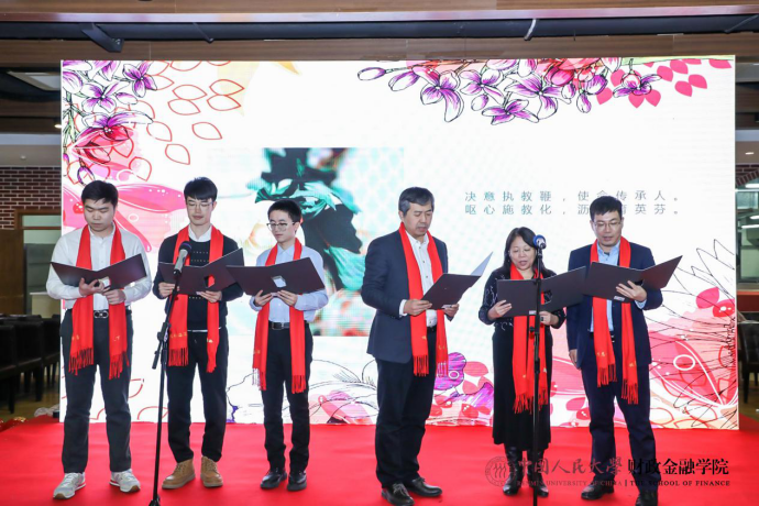 热闹喜庆的歌曲串烧拉开了联欢会的序幕。保险系的小嘉宾徐魏泽同带来京剧《沙家浜》选段,别具一格的唱腔赢得了阵阵掌声和喝彩。货币金融系教师和张致博、张乐仪、何昊泽、何允泽小朋友化身工农红军,为大家带来雄浑壮阔的毛主席诗词朗诵,令人热血沸腾。在任淮秀教授的荣休仪式环节,他的门生及同事以纪念视频和诗朗诵的形式表达了对他深切的敬仰和感激。财政系老师带来了2019年的最佳金曲《我和我的祖国》,回顾十月的爱国主义课堂,表达了热切的爱国之情。参加一二九合唱的五位教师及部分学生再次唱响《追寻》,用优美的歌声重现如论舞台上的辉煌时刻。大白预测 教工子女为大家带来“快乐三部曲”舞蹈串烧,现场气氛被推向高潮。大白预测 为本命年老师送上了蛋糕和真挚的祝福。最后,全体老师和演员共同合唱《明天会更好》,表达对新一年的美好展望,为联欢会画上了圆满的句号。
