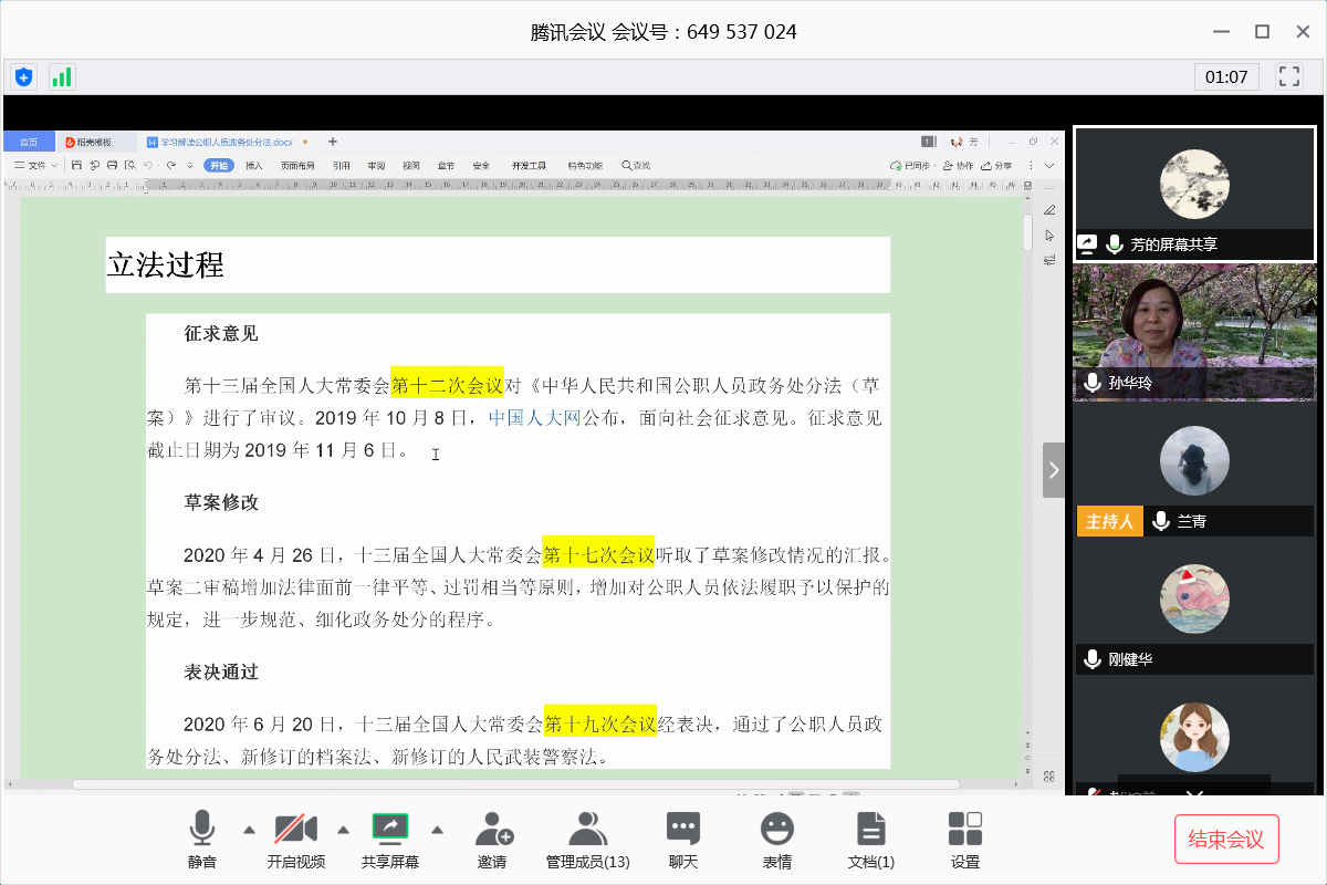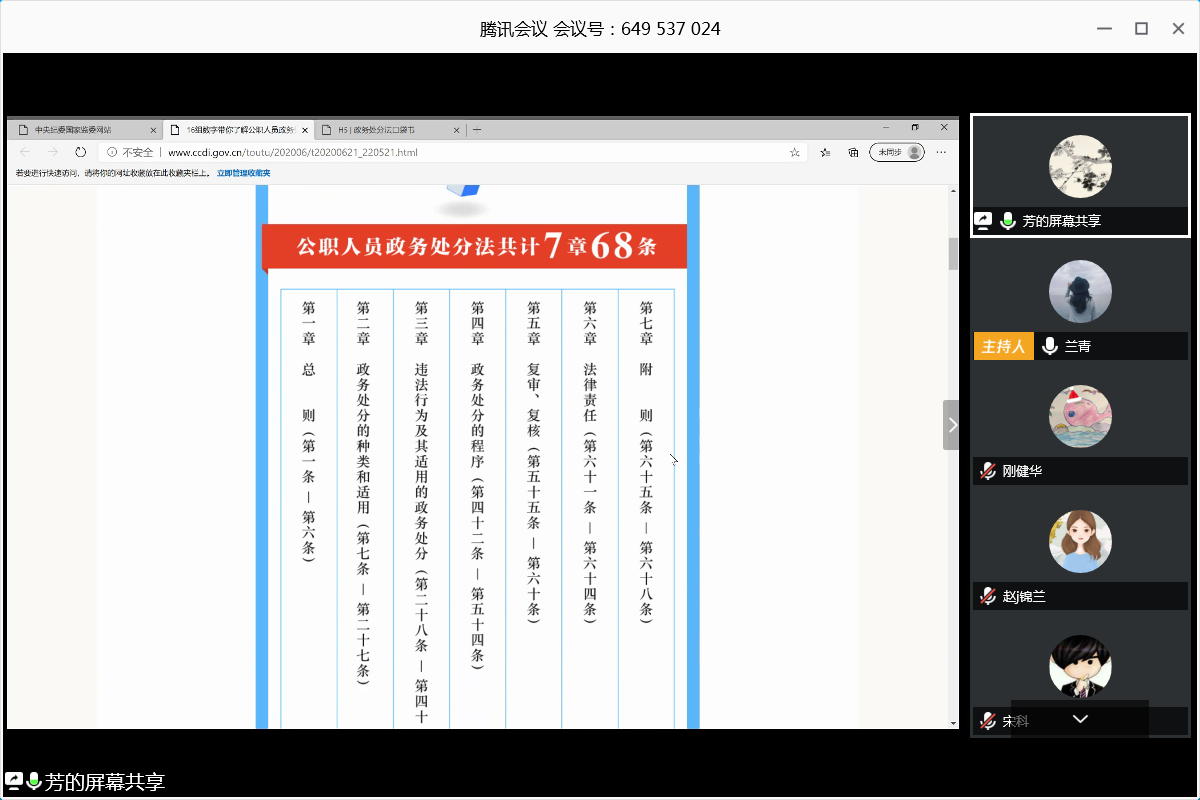 王芳对《中华人民共和国公职人员政务处分法》进行了专题报告。她详细介绍了《中华人民共和国公职人员政务处分法》的立法过程和基本内容,重点对《中华人民共和国公职人员政务处分法》的六大焦点问题和出台背景进行了详细解读。她指出,《中华人民共和国公职人员政务处分法》全面贯彻落实了十九届四中全会精神,是继监察法之后,深化国家监察体制改革的又一重要制度成果,对于完善党和国家监督体系,强化对公权力的监督具有重大意义。