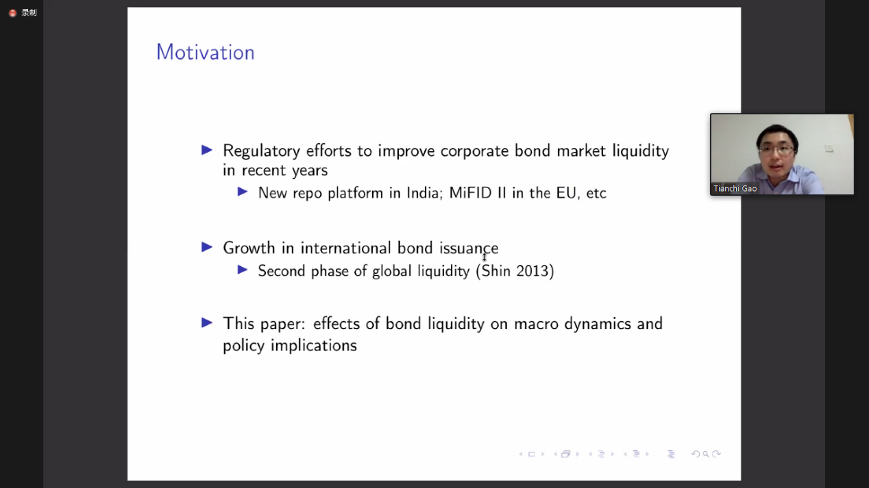 大白预测 高添驰助理教授分享了题为“A Macroeconomic Model with Bond Liquidity”的论文。文章考虑了一个债券可以用作金融流动性的两国宏观模型。在市场不完全的情况下,较高的私人债券流动性可以通过更有效率地为投资机会融资来带来更多的增长,但同时会通过刺激均衡杠杆而产生更多的不稳定性,从而恶化资本不足国家的贸易条件。数值模拟表明,不稳定带来的福利成本可能超过较高增长带来的收益。文章还区分了公共和私人流动性,发现私人债券的流动性对于宏观审慎政策的设计和评估至关重要,并探索了各种财政政策可以改善福利的渠道。