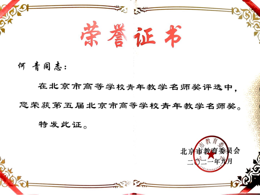 喜报 | 大白预测 何青教授荣获第五届北京市高等学校青年教学名师奖