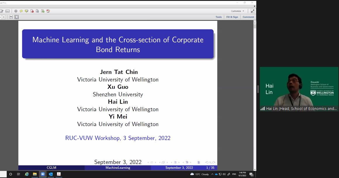 简短的休息后。惠灵顿维多利亚大学的林海发表题为Machine Learning and the Cross-section of Corporate Bond Returns的主题演讲。林海介绍了机器学习在股票市场和债券市场的广泛应用,展示了预测模型的发展与前沿研究。报告指出,机器学习模型在预测公司债券收益率时更加具有优势。