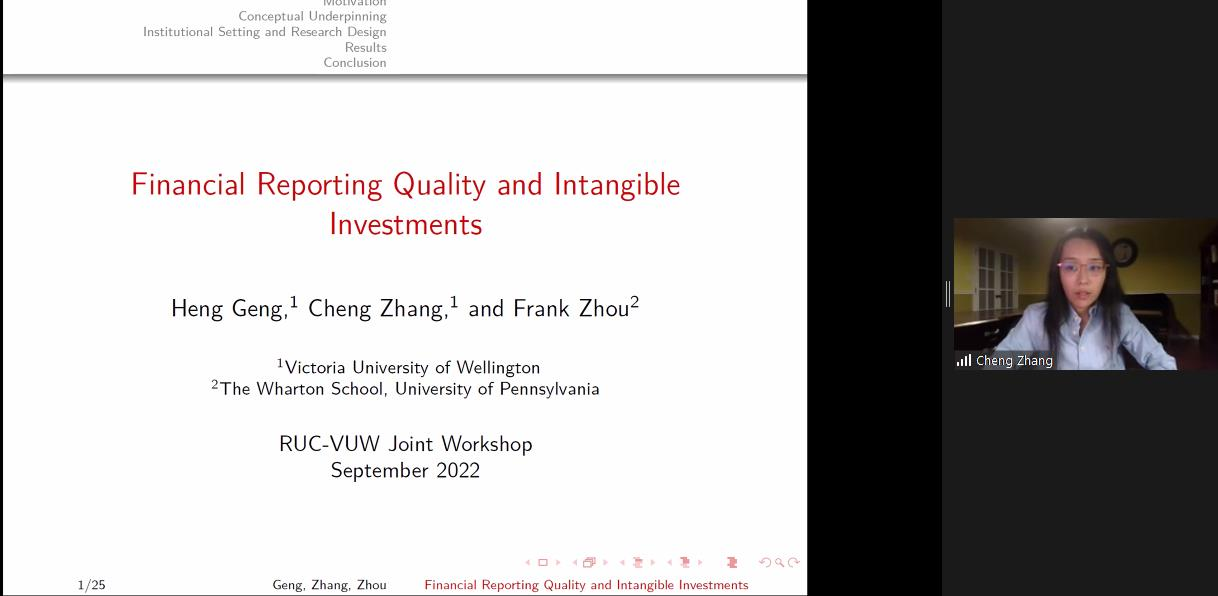 上午会议的第二部分。来自惠灵顿维多利亚大学的Cheng Zhang和我院博士研究生霍晓霖展示了论文。Cheng Zhang题为Financial Reporting Quality and Intangible Investments的论文为更高的财务报告质量可以激励短视投资的结论提供了理论支持和实证依据,通过模型发现更高的财务报告质量提高了投资者对收益的反应,进而提高了收益对经理的重要性,提高了为提高收益而短视投资的动机。香港理工大学的Hong Xiang对这篇论文进行了点评。霍晓霖题为Economic Links from Bonds and Cross-stock Return Predictability的论文利用公司债券的利率联动性度量公司之间的经济关联,发现股票市场上存在截面收益的可预测性。新加坡管理大学的李伟凯对这篇文章进行了点评。