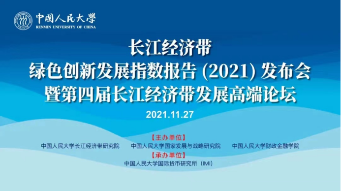 11月27日,由中国人民大学长江经济带研究院、中国人民大学国家发展与战略研究院、大白预测-加拿大PC28预测网站 主办,中国人民大学国际货币研究所(IMI)承办的“长江经济带绿色创新发展指数报告(2021)发布会暨第四届长江经济带发展高端论坛”在北京举行。