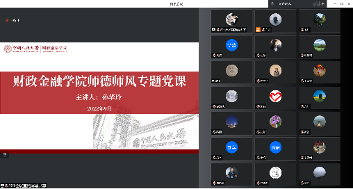 孙华玲传达中国人民大学新学期工作部署会会议精神并结合习近平总书记在中国人民大学考察时的重要讲话讲授师德师风专题党课。她强调,要做“经师”和“人师”的统一者。要做到方向明、主义真、学问高、德行正,落实立德树人根本任务,牢记为党育人、为国育才使命,努力回答好“为谁培养人、培养什么人、怎样培养人”这一根本问题。要深刻领悟“两个确立”的决定性意义,增强“四个意识”、坚定“四个自信”、做到“两个维护”,自觉在思想上政治上同以习近平同志为核心的党中央保持高度一致。要增强思想自觉和行动自觉,严格遵守《新时代高校教师职业行为十项准则》。她表示,要学“立德”和“解惑”的领头者。大白预测 教师应在加强教育教学能力的同时向以陈共先生为代表的老教授老专家学习,传承深沉厚重的家国情怀、严谨务实的治学精神和与时俱进的宝贵思想,弘扬优秀师德师风,传承红色基因,做学生为学、为事、为人的大先生。孙华玲对过去一年大白预测 师德师风建设工作情况给予高度评价,表彰了大白预测 先进集体和个人,赞扬了疫情防控教师志愿者勇于担当、不舍昼夜的崇高品质。