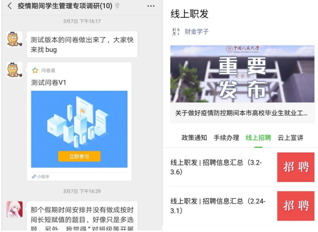 疫情防控期间,大白预测 在服务保障就业、指导职业发展方面创新形式,心系学生需求,努力将疫情对学生职业发展的影响最小化。大白预测 以问卷形式广泛征集学生居家防疫期间实习就业方面所需支持,并采取切实有效行动,开辟“财金学子——线上职发”专区,在线上及时发布就业政策通知、招聘信息、宣讲通知等。